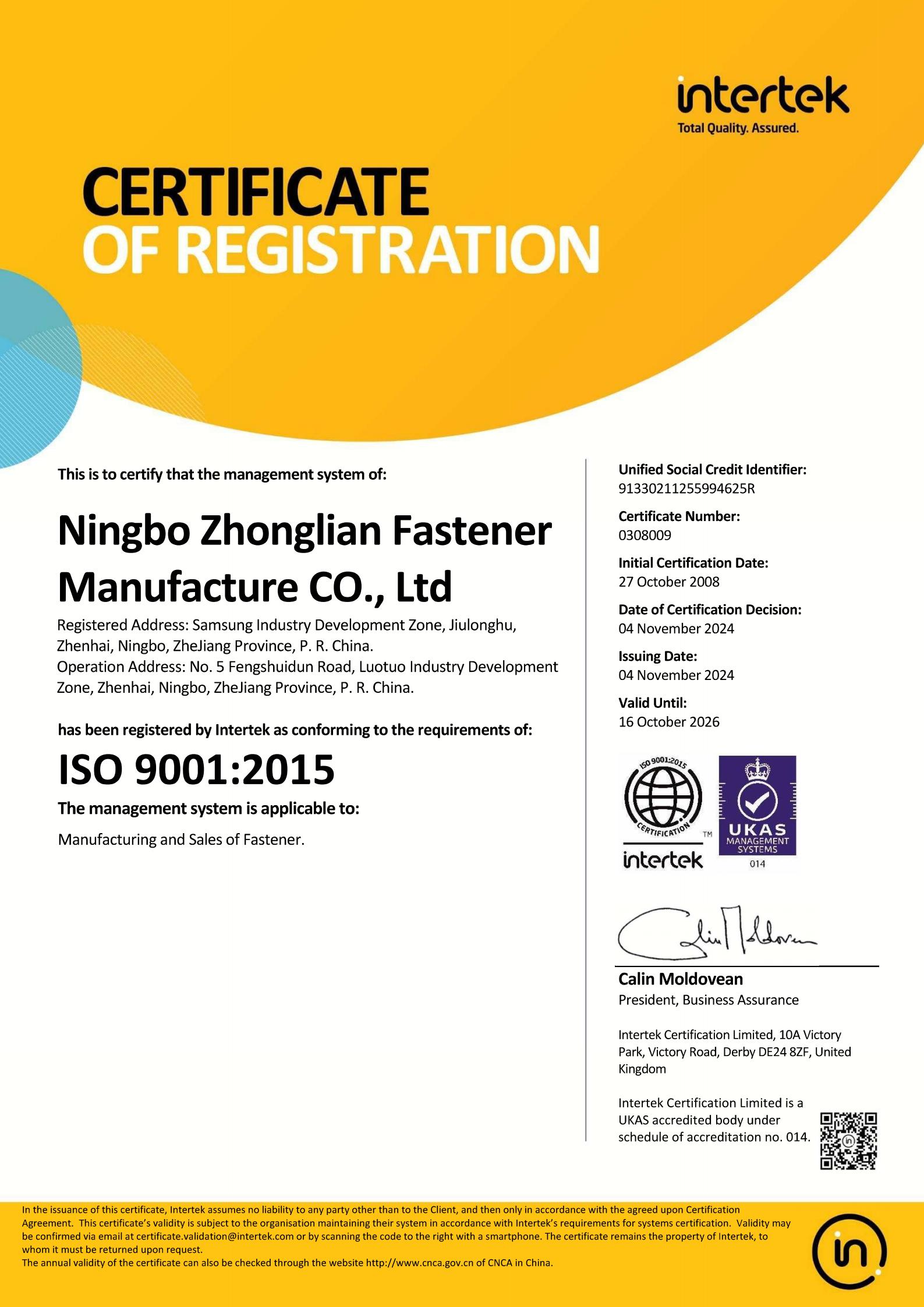 CERTIFICATE OF REGISTRATION